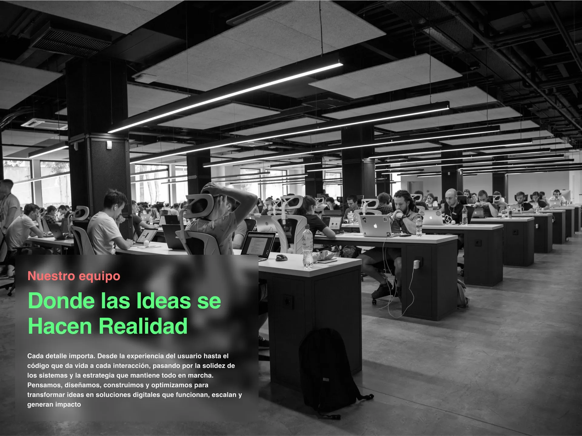 Cada detalle importa. Desde la experiencia del usuario hasta el código que da vida a cada interacción, pasando por la solidez de los sistemas y la estrategia que mantiene todo en marcha. Pensamos, diseñamos, construimos y optimizamos para transformar ideas en soluciones digitales que funcionan, escalan y generan impacto.